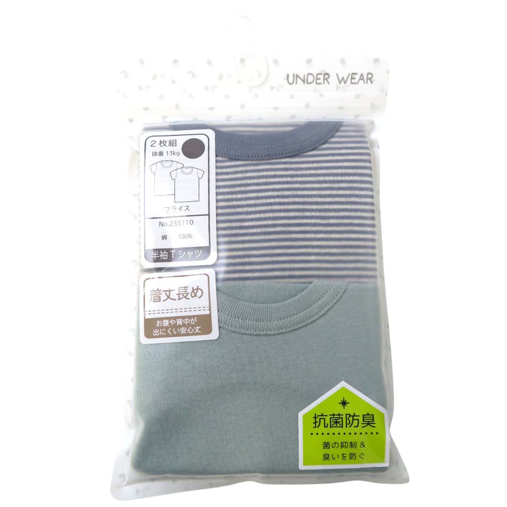 柔らかくて快適なフライス生地。伸縮があり動きやすい。デリケートなお肌に触れないよう洗濯ネーム外付け。ボーダー&無地。