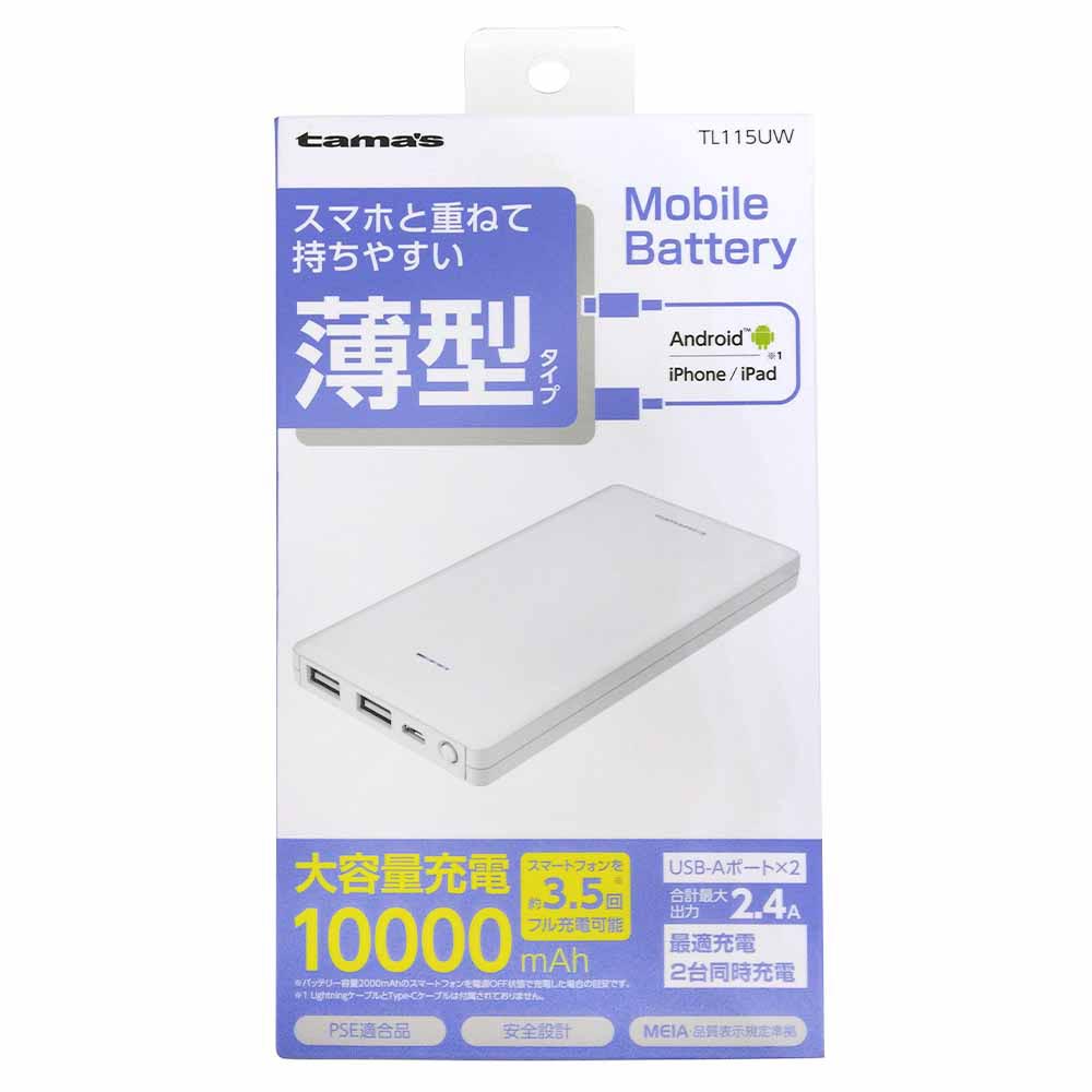 多摩電子工業 モバイルバッテリー10000mAh 2ポート TL115UW ホワイト