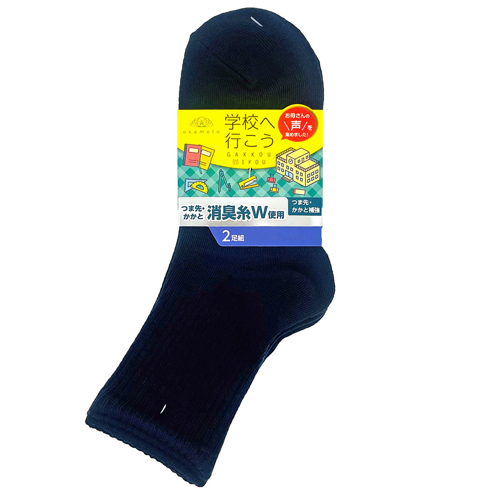学校へ行こう 無地ショートソックス 2足組 ネイビー