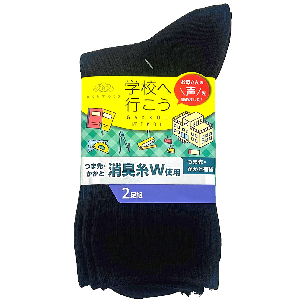 学校へ行こう 無地ジャスト丈 2足組 クロ