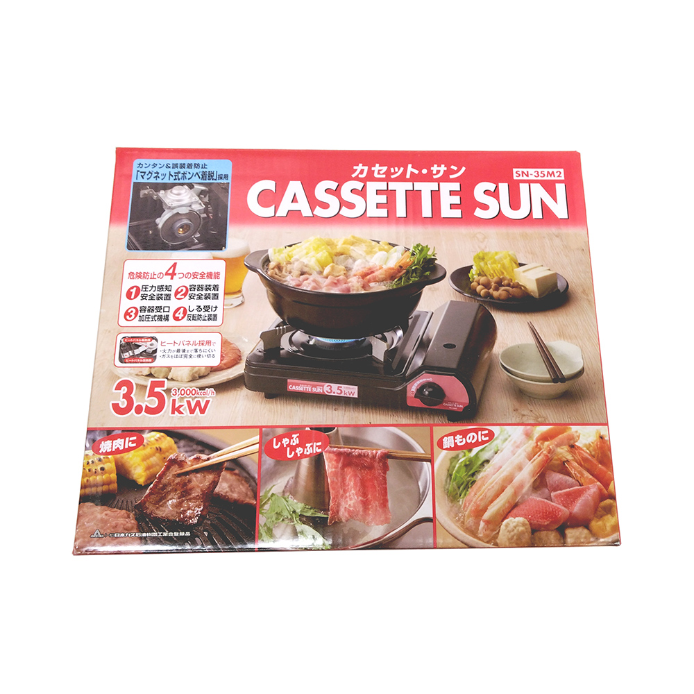 最大発熱量 3.5kw。ボンベ着脱にマグネット方式採用。ヒートパネル搭載。