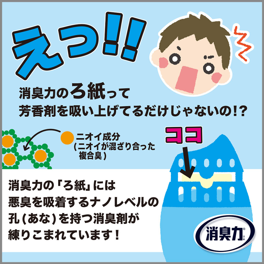●ナノパウダー※が悪臭をすばやく強力に吸着し、消臭。※ナノレベルの孔(あな)を持つ、悪臭を吸着する消臭剤。