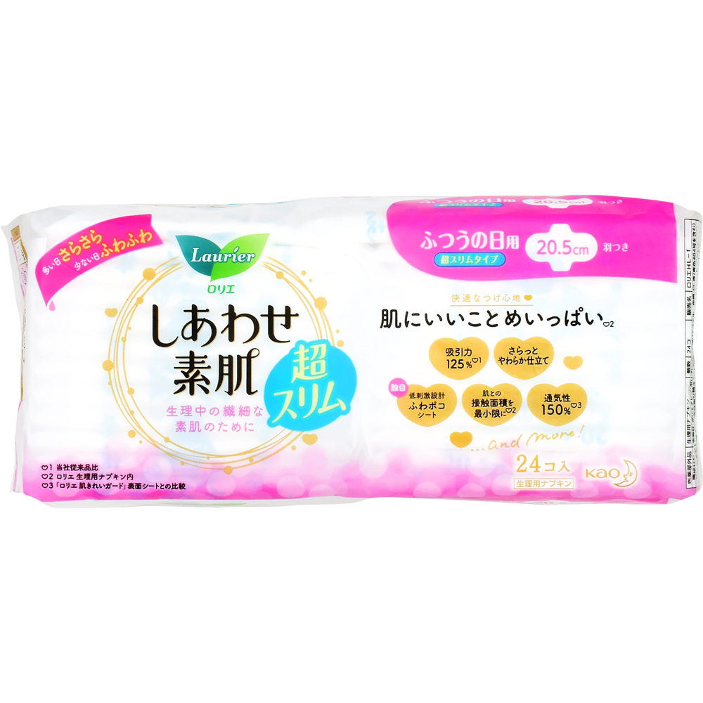 花王 ロリエ しあわせ素肌 通気超スリム ふつうの日用 20.5cm 羽つき 24個入