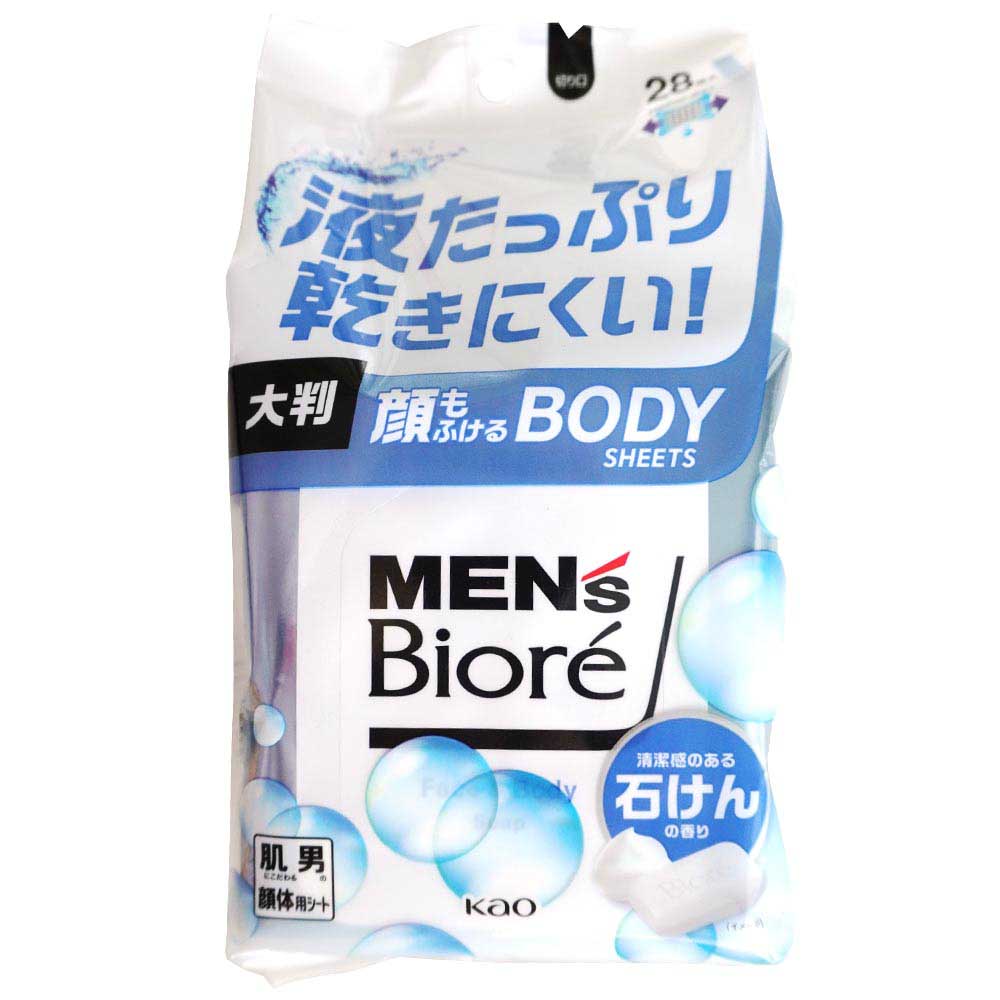 花王 メンズビオレ 顔もふけるボディシート 清潔感のある石けんの香り 28枚入