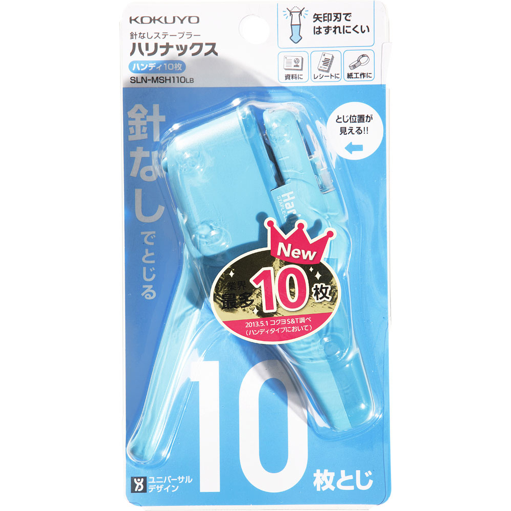 コクヨ 針なしステープラ ハリナックス ハンディ10枚 青 SLN-MSH110LB
