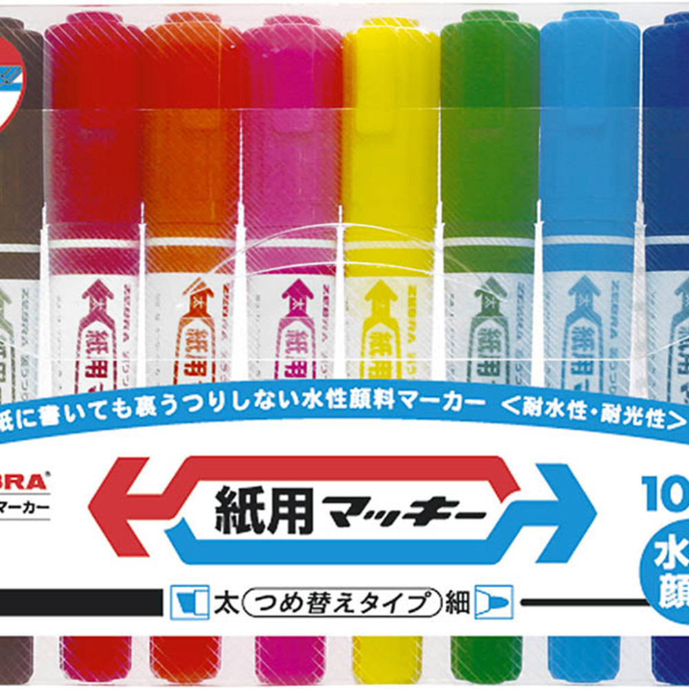 ゼブラ 紙用マッキー 太字/細字 10色セット 水性ペン WYT5-10C