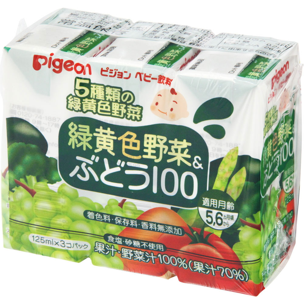 ピジョン ベビー飲料 緑黄色野菜&ぶどう100 125ml×3個パック