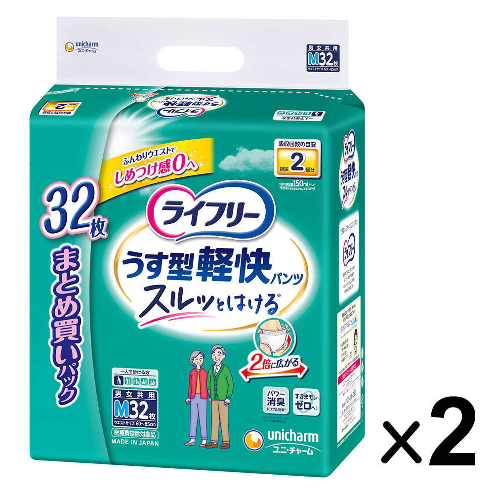 ユニ・チャーム ライフリー パンツタイプ うす型軽快パンツ 2回吸収 Mサイズ 32枚×2パック