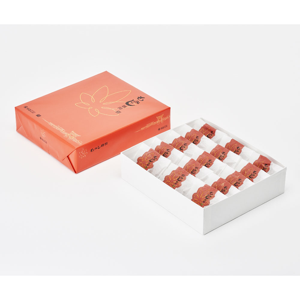 良質な小豆とざらめで作られた、こだわりのこしあんを、卵をたっぷり使ったカステラ生地でふんわり焼き上げ。昔ながらの上品なもみじ饅頭です。