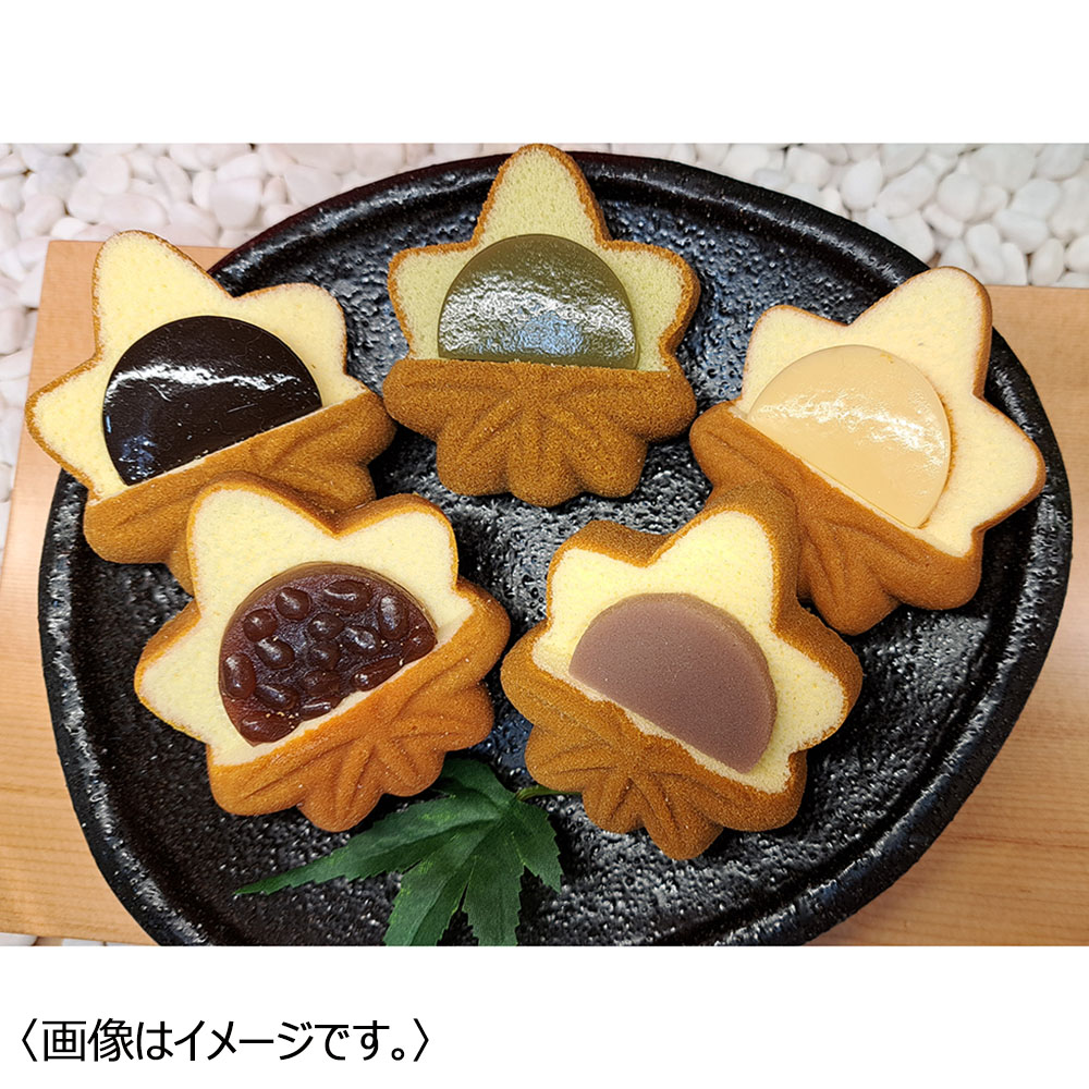 人気のもみじ饅頭「こしあん」、「つぶあん」、「抹茶あん」、「チョコ」、「クリーム」を詰め合せ。広島土産の定番です。