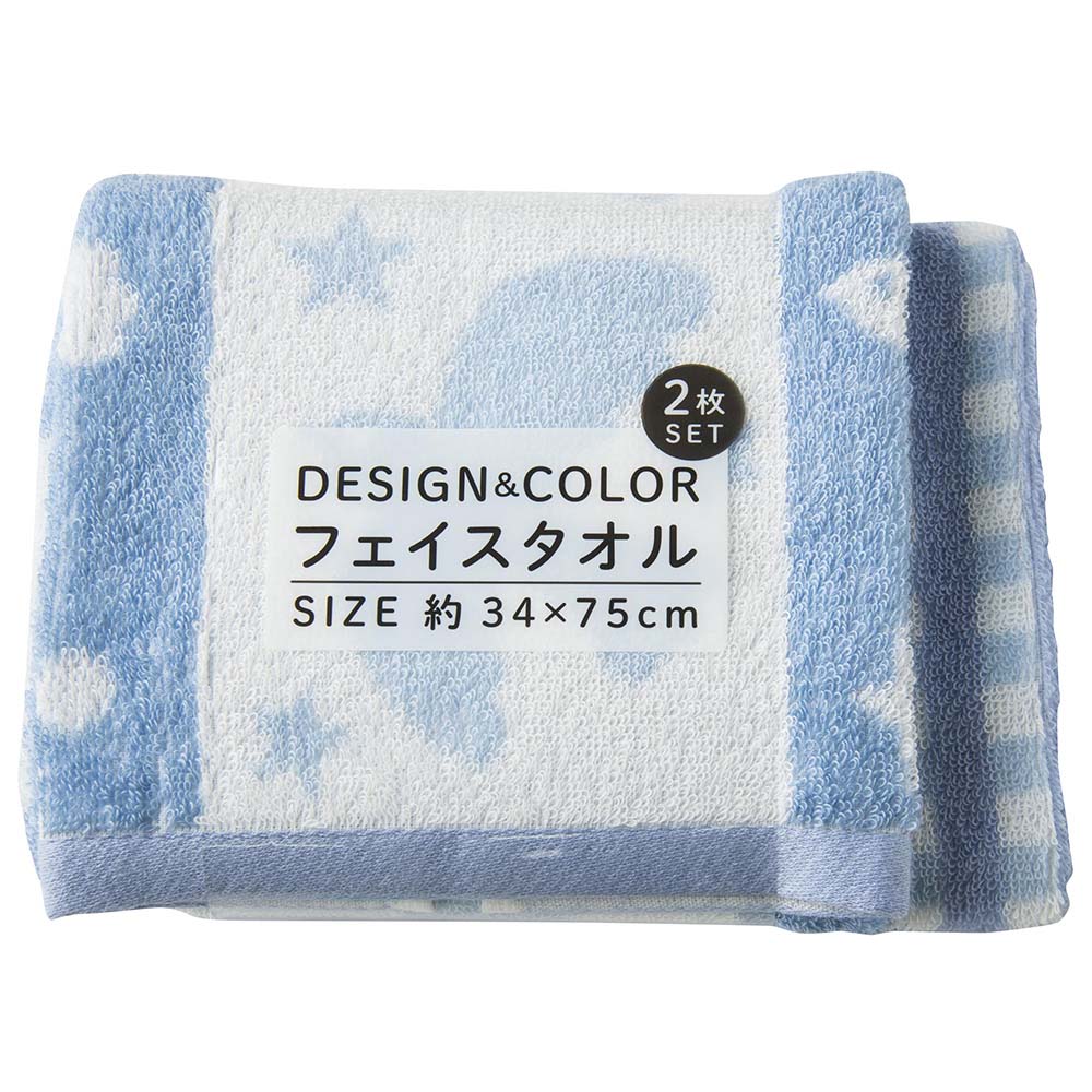 カラー&デザインフェイスタオル2枚組