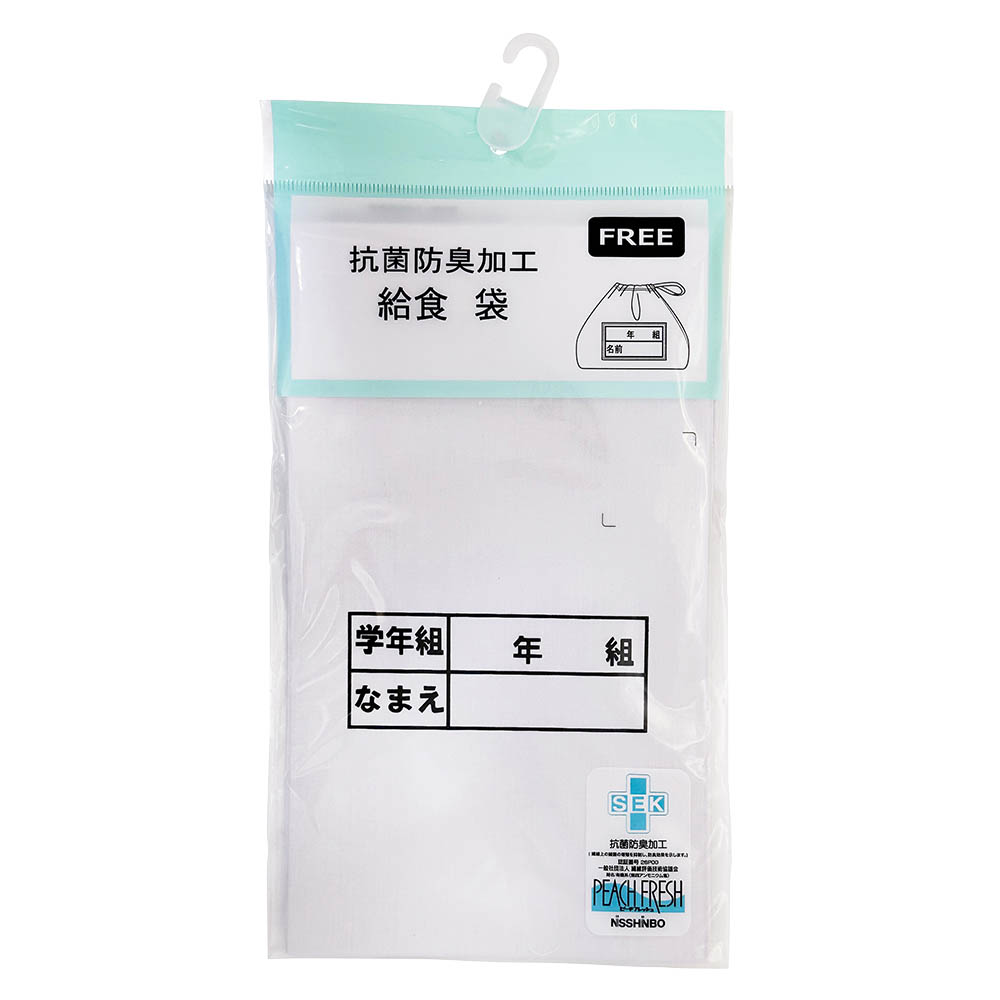 給食着を入れるのに最適な巾着袋です。抗菌防臭加工素材を使用しているので、製品をより清潔にたもちます。