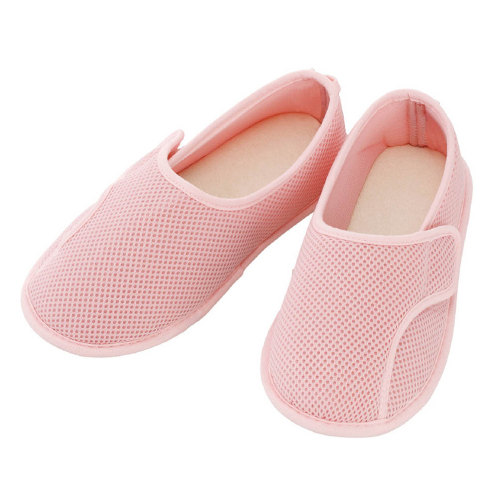 院内用のルームシューズです。素足でも気持ち良いパイル地で、通気性の良いメッシュタイプ。かかとにループが付いており、履きやすくなっています。グリップ性に優れた底材を使用しています。洗濯機で洗えます。日本転倒予防学会推奨品。入院時の足元をサポートします。