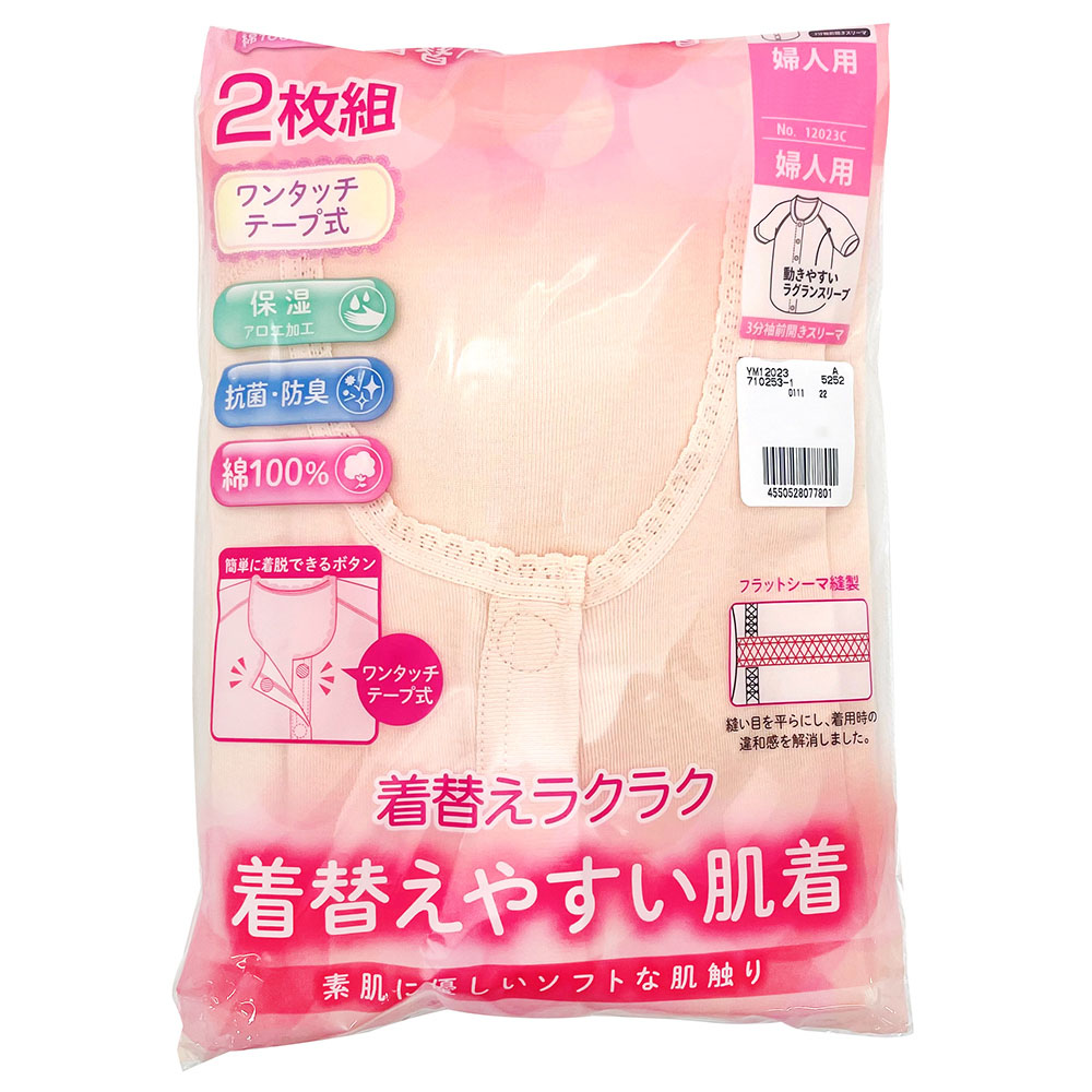 婦人 2枚組 ワンタッチテープ式前開き 3分袖スリーマ