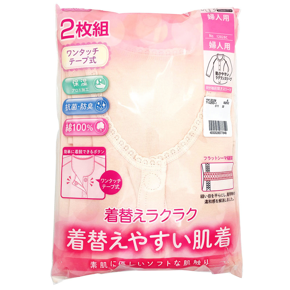 婦人 2枚組  ワンタッチテープ式前開き 8分袖スリーマ