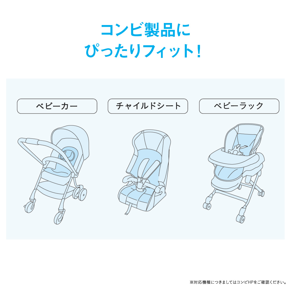 コンビのベビーカー・チャイルドシート・スウィングベッド&チェアに対応する「さらすやエアスルーシートα」は、3層メッシュのふんわりシート構造で汗っかきの赤ちゃんをムレと暑さから守ります。