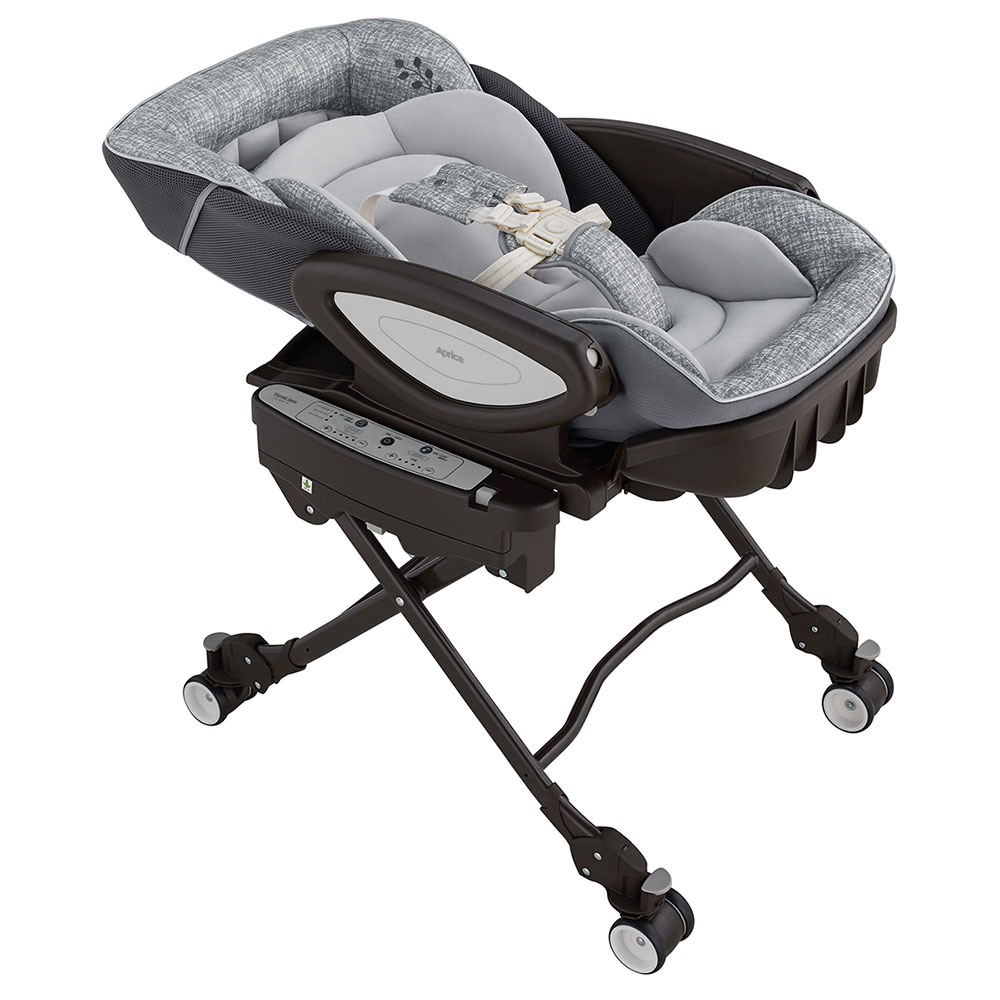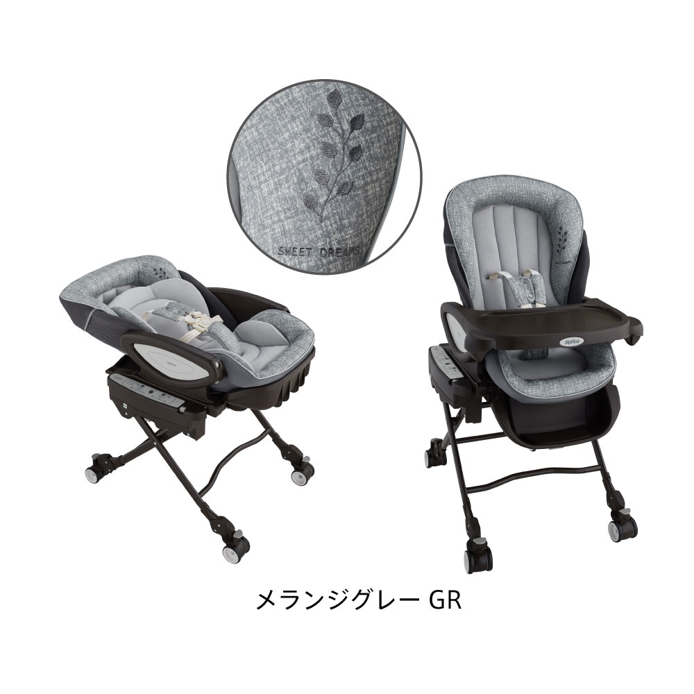 おうちの中のいろんな場面で活躍し4歳頃まで長く使えるハイローベッド&チェアの電動スウィングタイプ。
