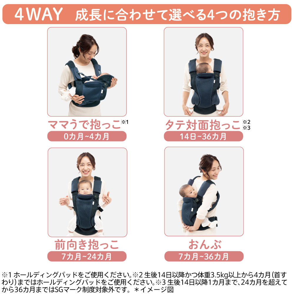 「コアラ ウルトラメッシュ EX」は新生児(2.5kg)から36カ月まで4WAYで使える腰ベルトタイプの抱っこひも。「子守熊(こもりぐま)」という別名もあるコアラの子育てを理想として生まれました。
