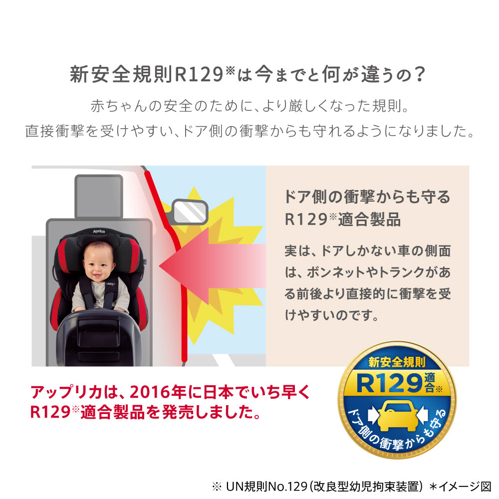 赤ちゃんの安全のために、より厳しくなった新安全規則R129※1に適合。