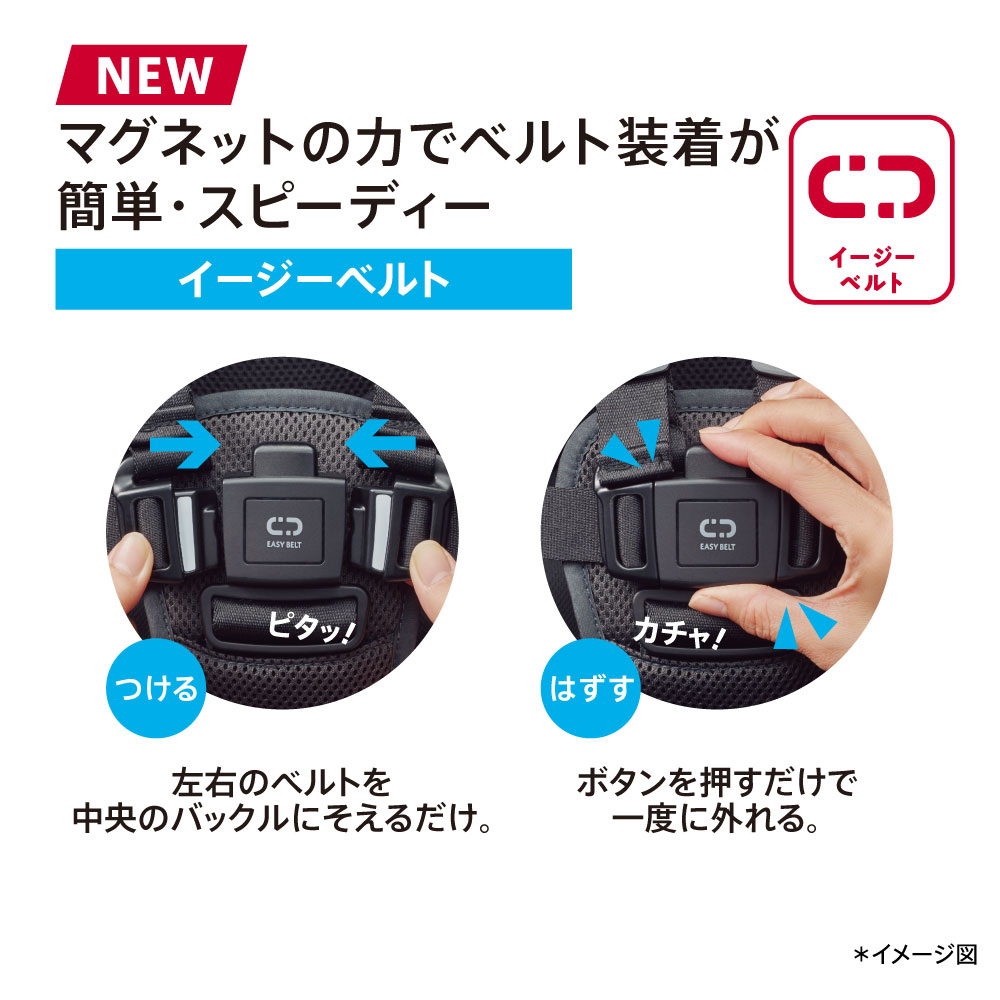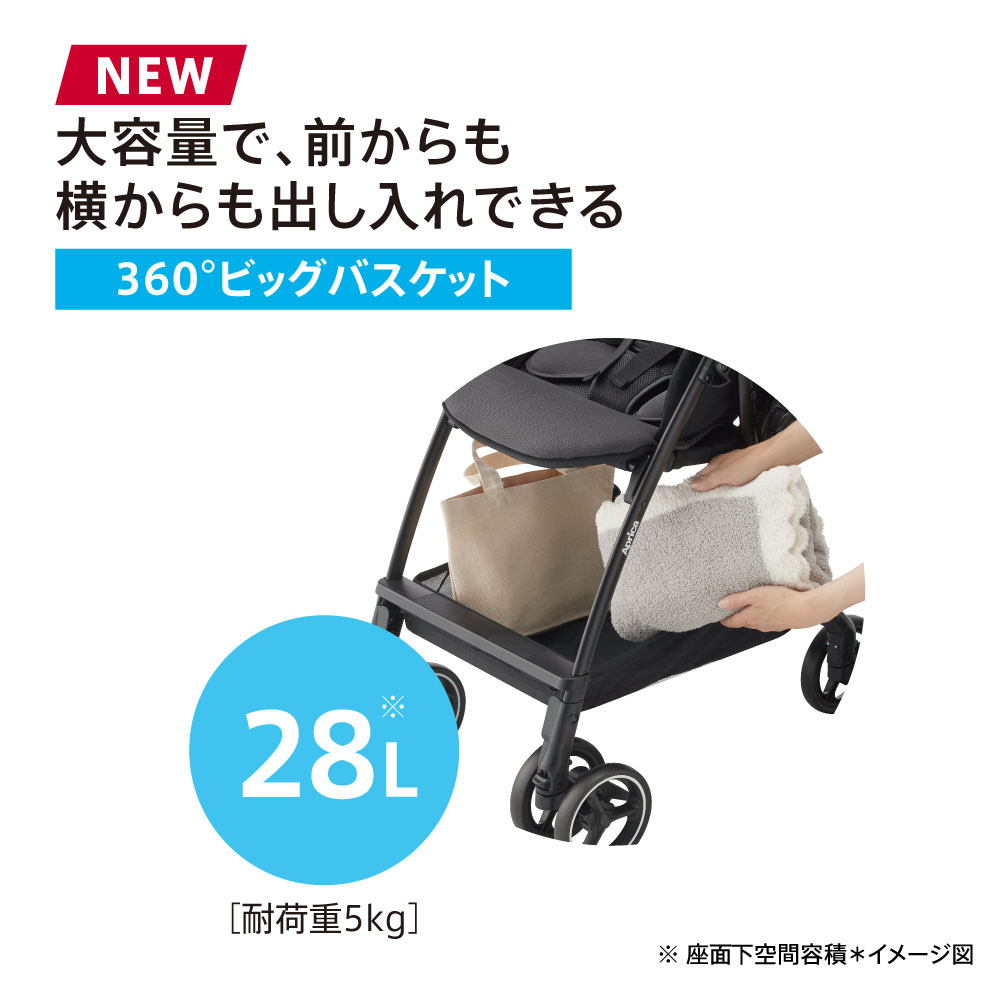 その他にも、日差し・紫外線から守る「カプセルマルチフード」、マグネットの力でベルト装着が簡単・スピーディー「イージーベルト」、大容量で、前からも横からも出し入れできる「360°ビッグバスケット」、風を通し熱をカットして座席の温度上昇を防ぐ「Wサーモメディカルシステム」など、赤ちゃんとママ・パパのための機能が満載。