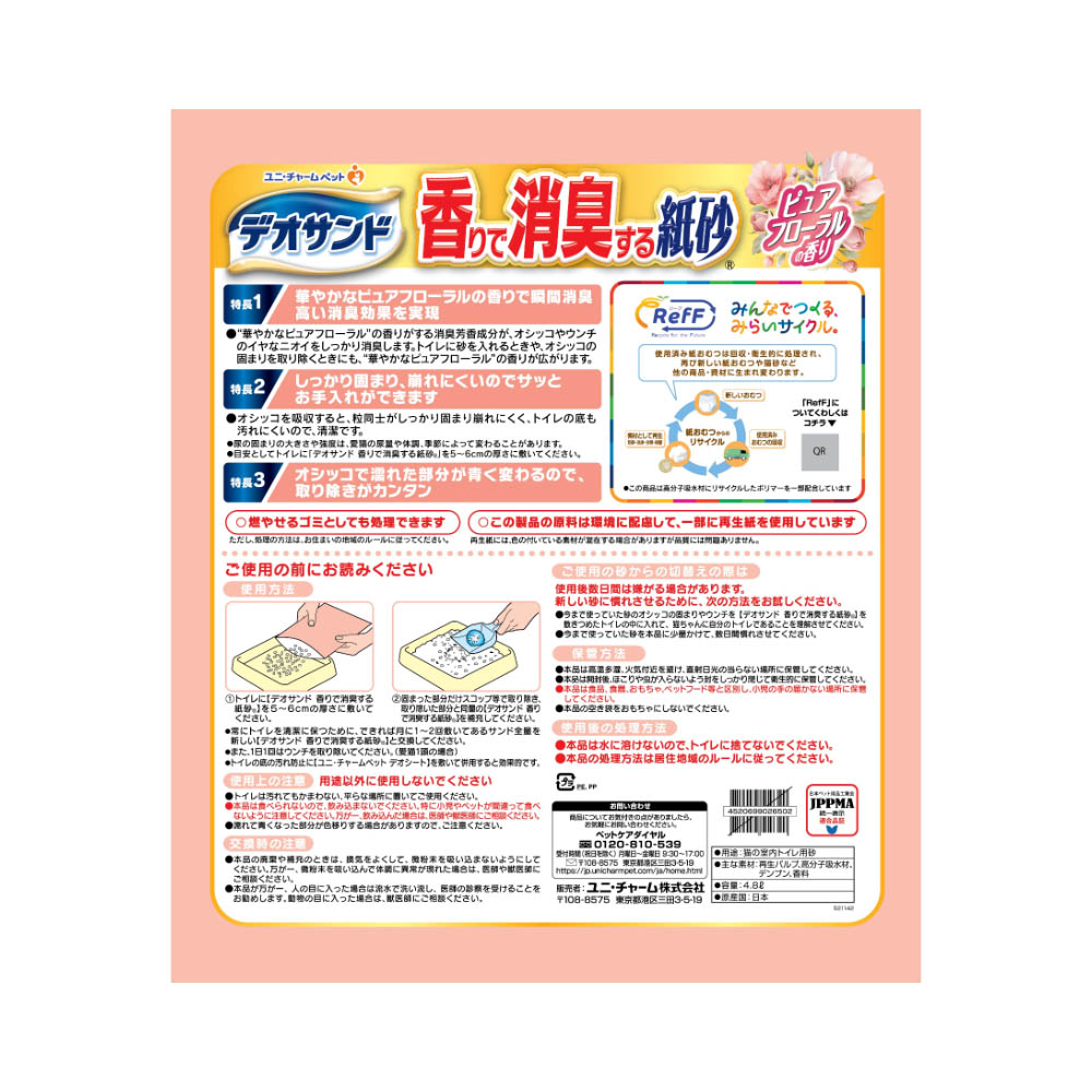 デオサンド 香りで消臭する紙砂 RefFピュアフローラルの香り4.8L