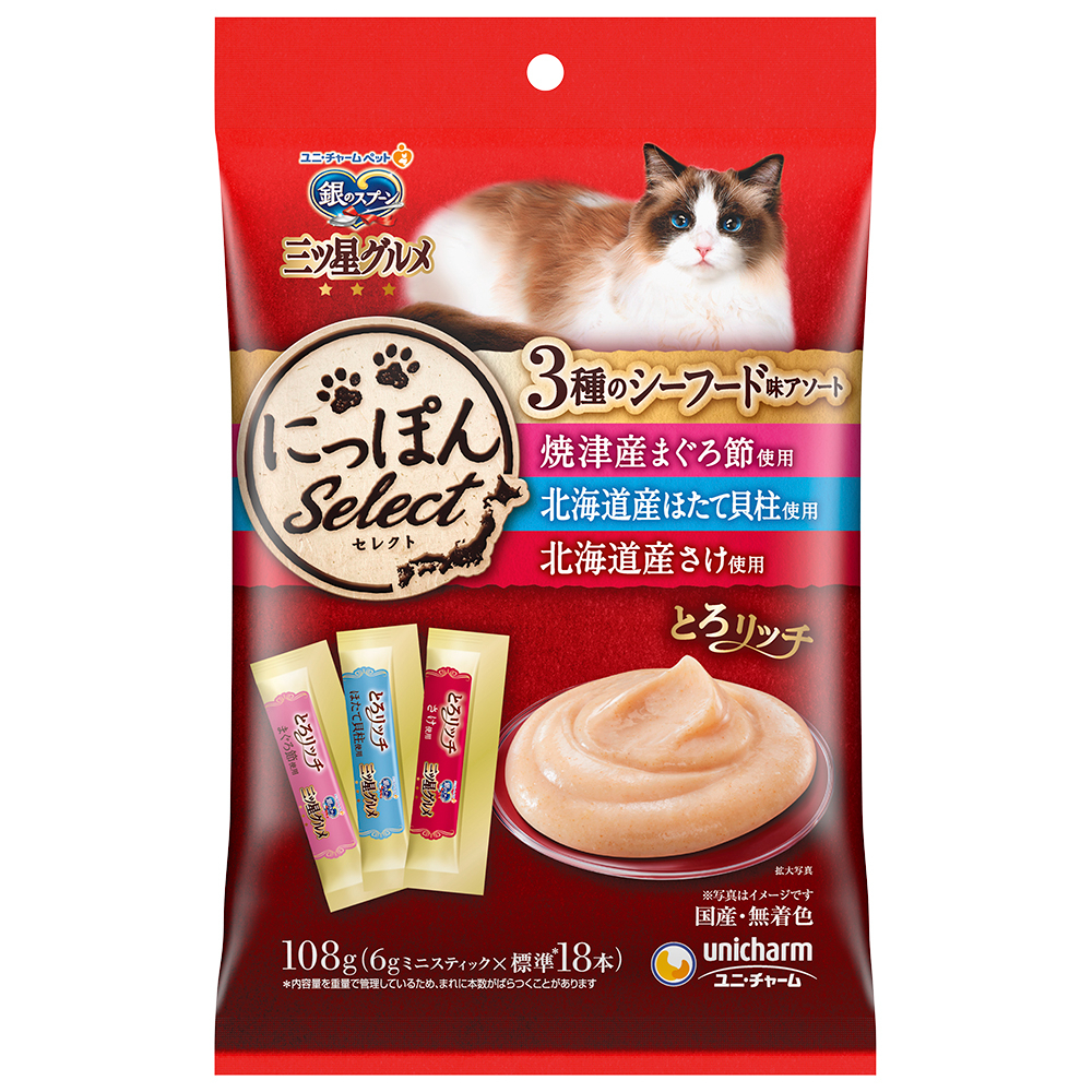 銀のスプーン 三ツ星グルメ おやつ3種のシーフード味アソートとろリッチまぐろ節&ほたて貝柱&さけ使用108g