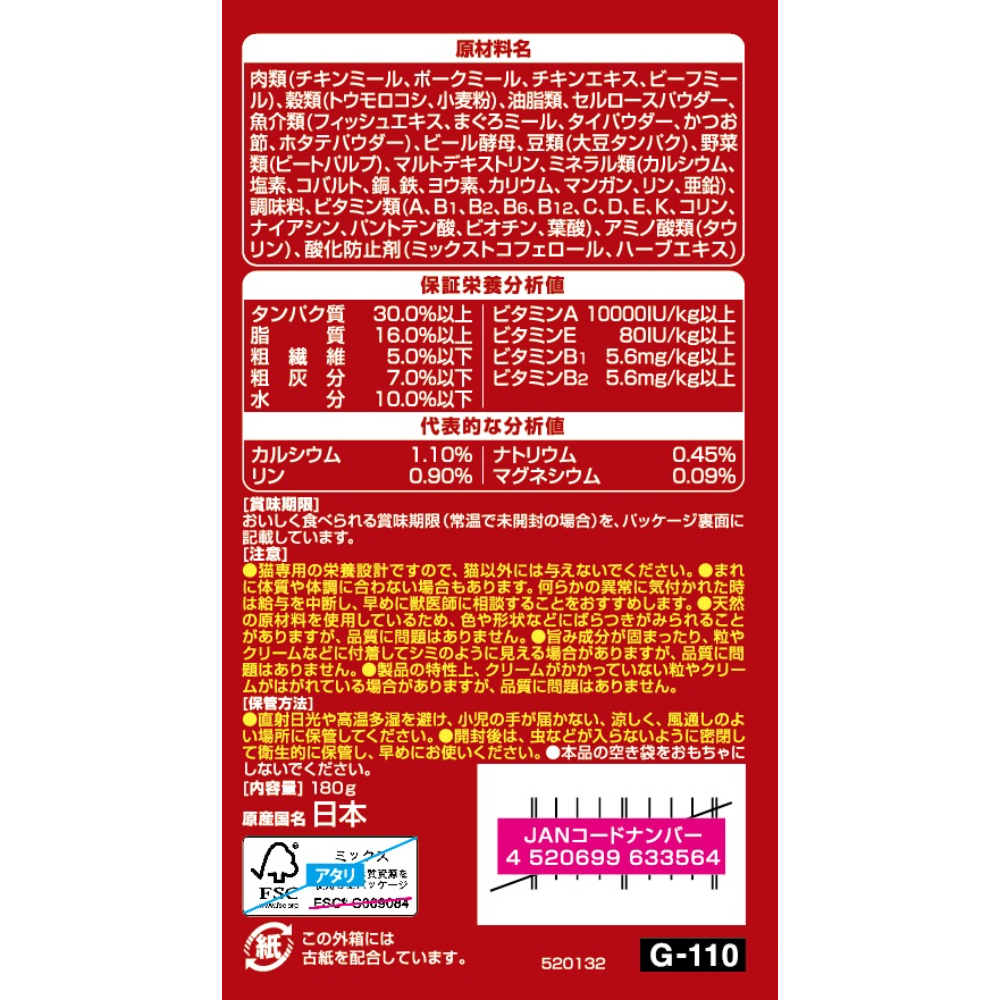 贅沢な素材の旨みたっぷりで、香ばしく焼き上げた三ツ星のおいしさ。ドライ粒にクリームを絡めて、今までにない味わいを実現。3種のアソートタイプ。着色料不使用。おいしさと豊かな風味を逃さない、食べきり小分けパック18g(標準)×10袋。