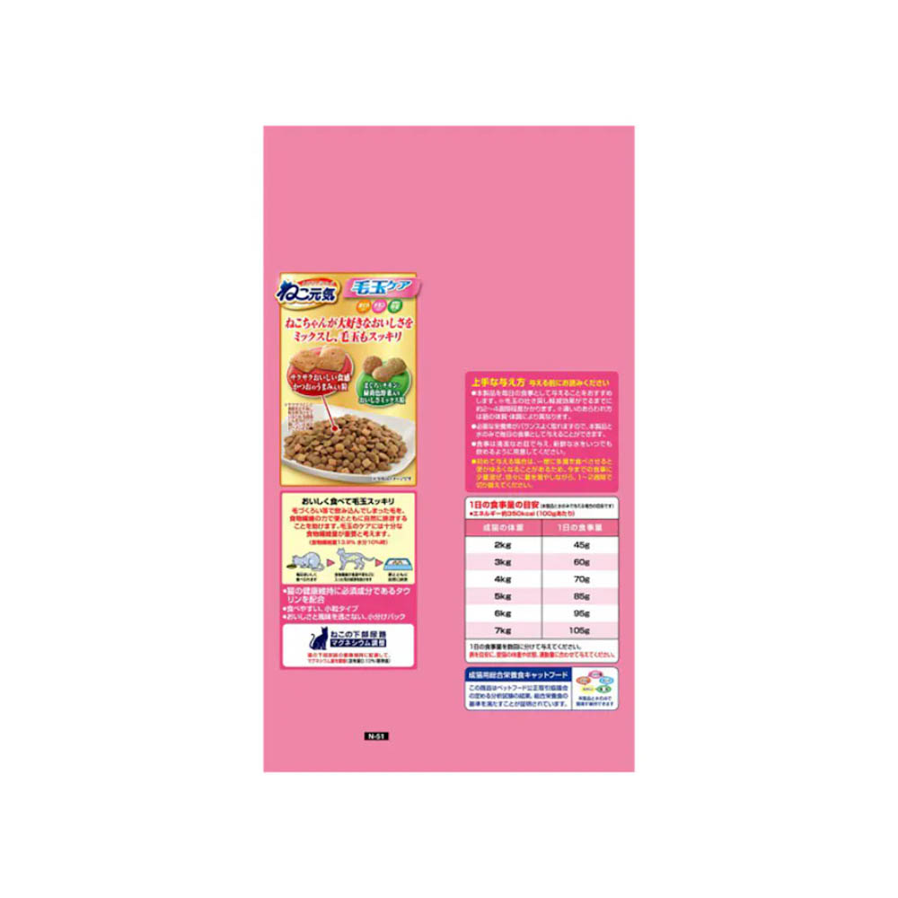 毛づくろい等で飲み込んでしまった毛の排泄を助けるために、食物繊維を配合。サクサク食感の美味しい粒が入ってとびつくおいしさ。まぐろ・チキン・緑黄色野菜入り。天然の原材料を使用しているため、色、形状などにばらつきがみられる事がありますが、品質に問題はありません。直射日光、高温多湿をさけ涼しい場所に保管してください。