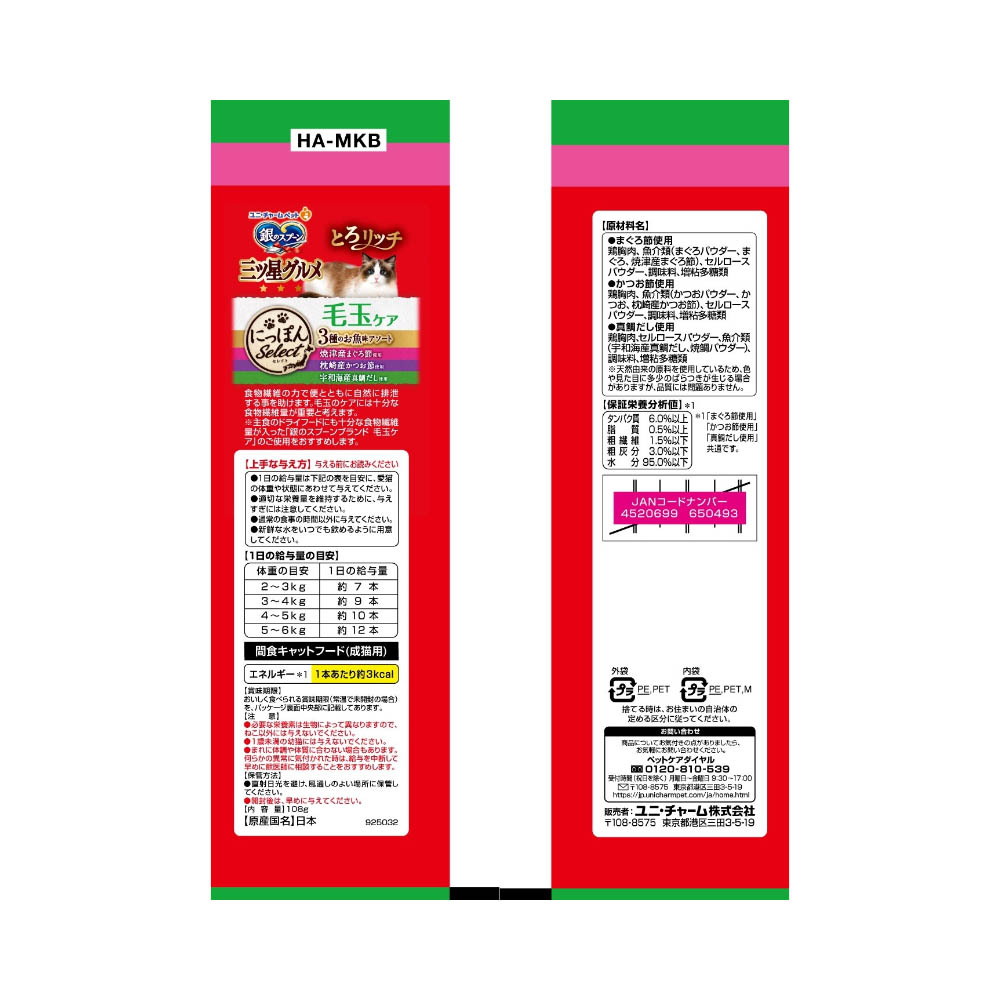 銀のスプーン 三ツ星グルメ おやつにっぽんSeLectとろリッチ毛玉ケア3種まぐろ節かつお節真鯛だし108g