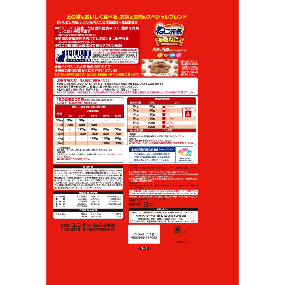 ねこ元気 複数ねこ用お魚とお肉のスペシャルブレンド まぐろ・かつお・白身魚・チキン入り5.0kg
