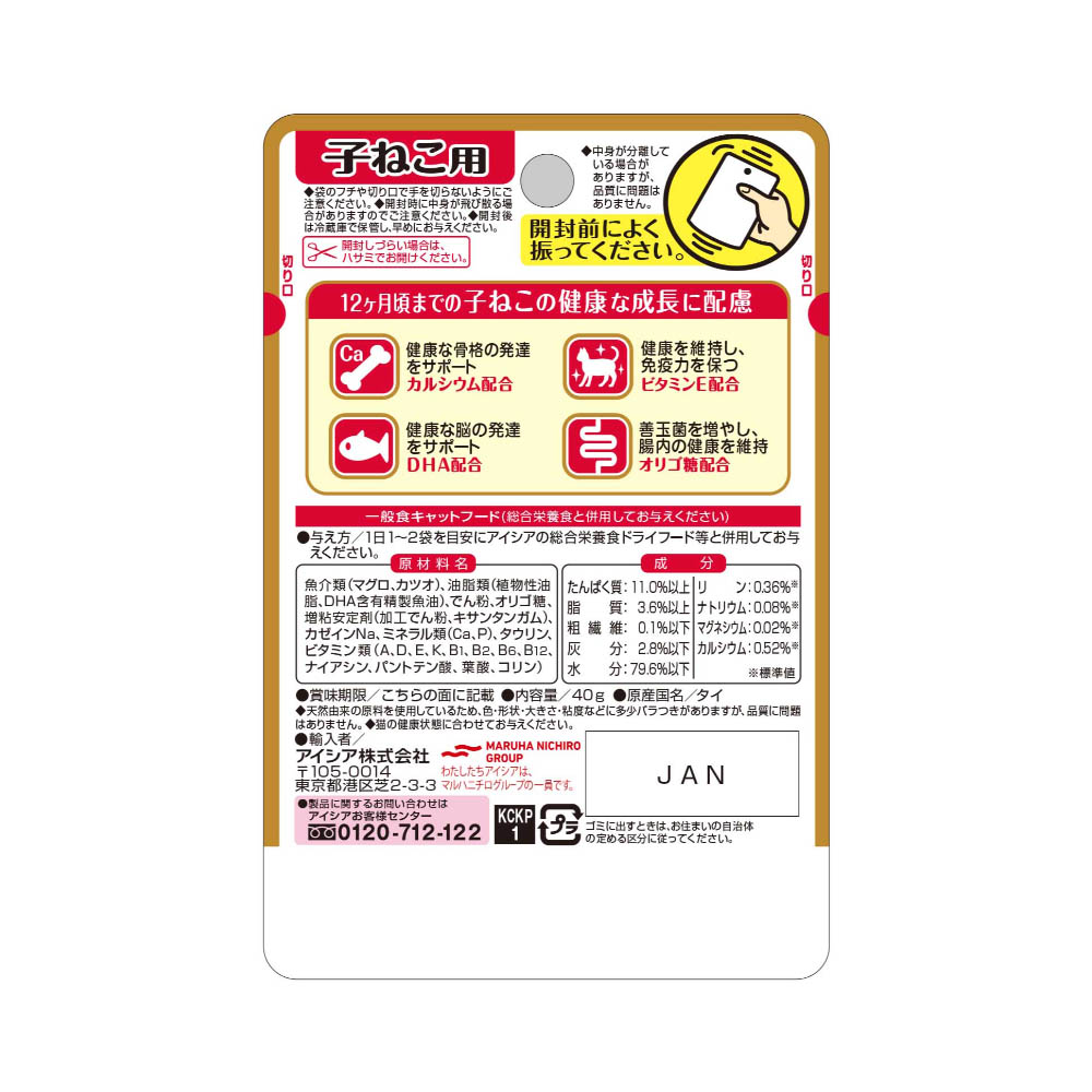 健康缶パウチ 子ねこ用のためのこまかめフレーク入りまぐろペースト 40g