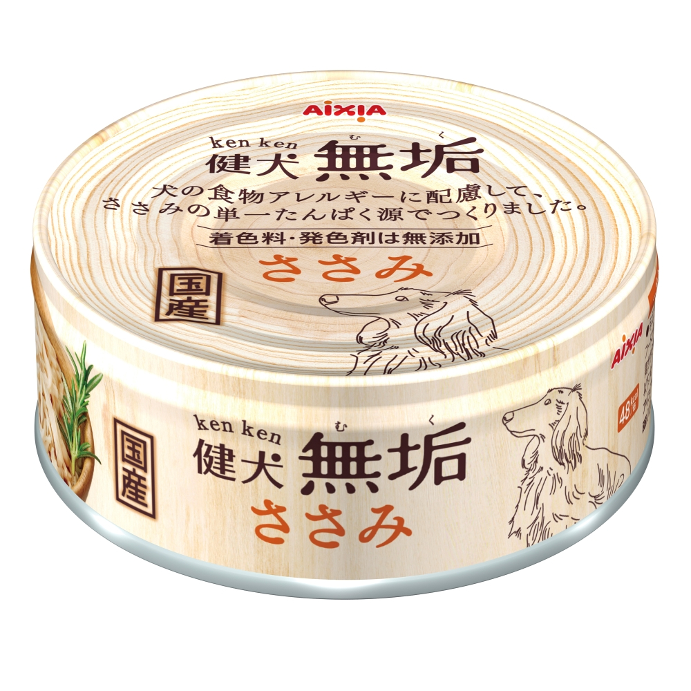 犬の食物アレルギーに配慮して、鶏ささみの単一たんぱく源仕立て。着色料・発色剤は無添加。水煮タイプ。