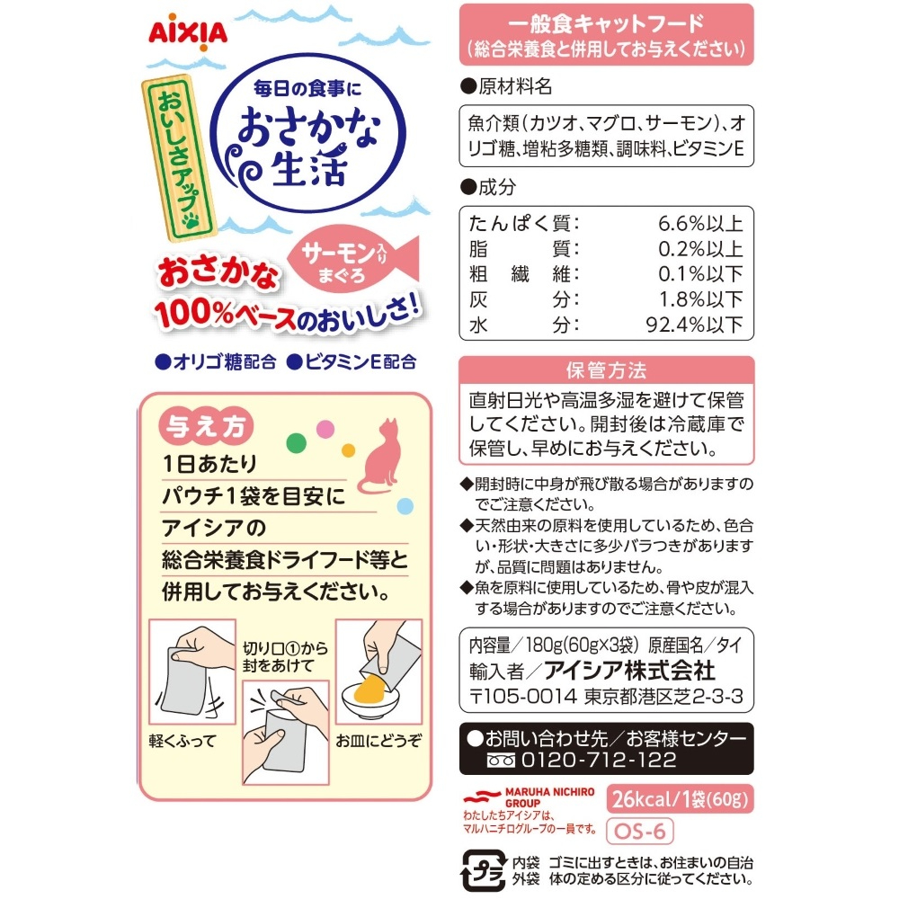 ベース素材はまじりっけなしのおさかな100%。おさかなのおいしさをとじこめたゼリー仕立てで、腸内の善玉菌を増やすオリゴ糖を配合。3袋入り。