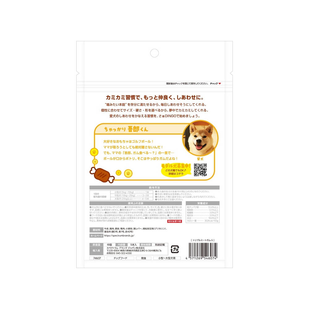 長持ちタイプ!長く噛むことで歯の汚れを落とします。1本で3種類のお肉、2種類のガムが楽しめます!チキン:上質なチキンの正肉のみ使用。鴨肉:ビタミンB群が豊富。レバー:鉄分が豊富。牛皮:噛み応え抜群の定番ガム。豚皮:コラーゲンが豊富。犬以外に食べさせないでください。天然原料使用のため、形、サイズ、色、硬さに多少差がありますが、品質には異常ありません。開封後はチャックを閉じて、冷蔵庫に保存し、なるべく早く使い切ってください。袋の内側に、原料の成分や水分が付着していましても、品質には異常ありません。フードの白い粉は原料成分が熱により析出したもので、品質には異常ありません。フードの黒い部分や窪みは加熱によるもので、品質には異常ありません。体調や体質に合わない場合は使用中止し、異常あれば獣医師にご相談ください。開封後はチャックを閉じて、冷蔵庫に保存し、なるべく早く使い切ってください。