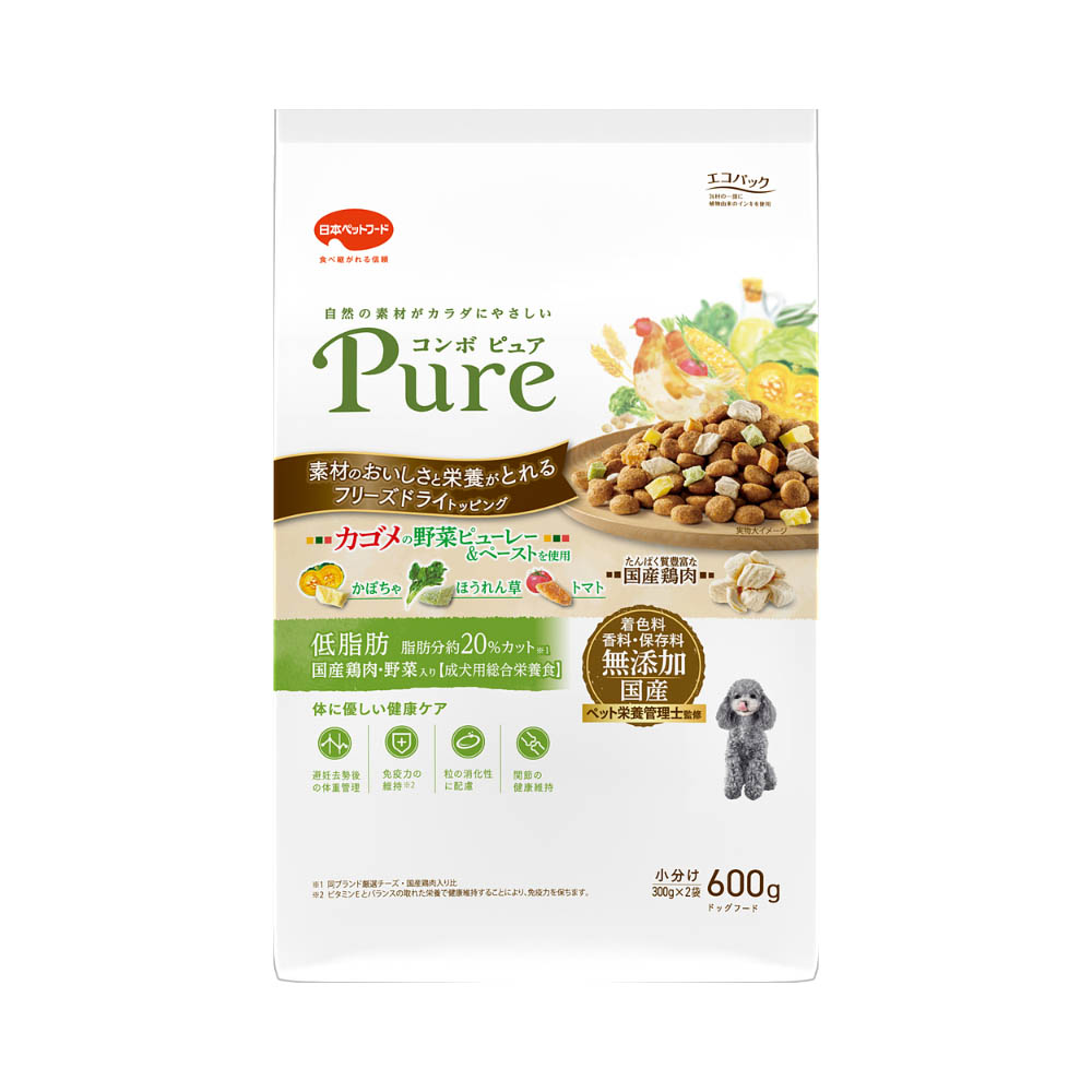おいしく脂肪分調整!国産鶏肉と野菜入り体質や体調に合わない場合は、使用を中止し、獣医師にご相談ください。本商品は成犬以上が対象です。子犬(12ヵ月まで)には子犬用フードをお与えください。
