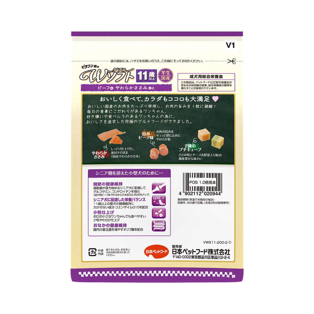 ビタワン 君のWソフト11歳以上お肉を味わうビーフ味粒・やわらかささみ入り200g