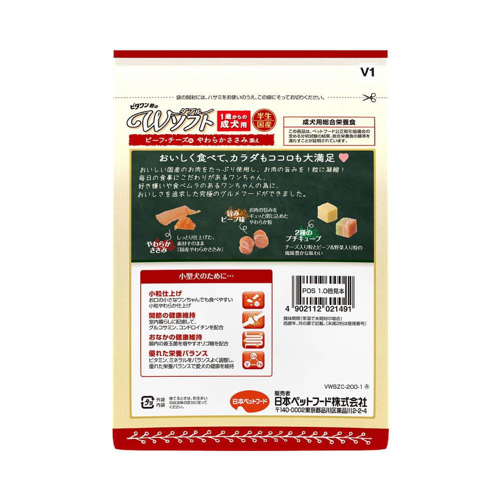 ビタワン 君のWソフト成犬用ビーフ・チーズ味・やわらかささみ添え200g