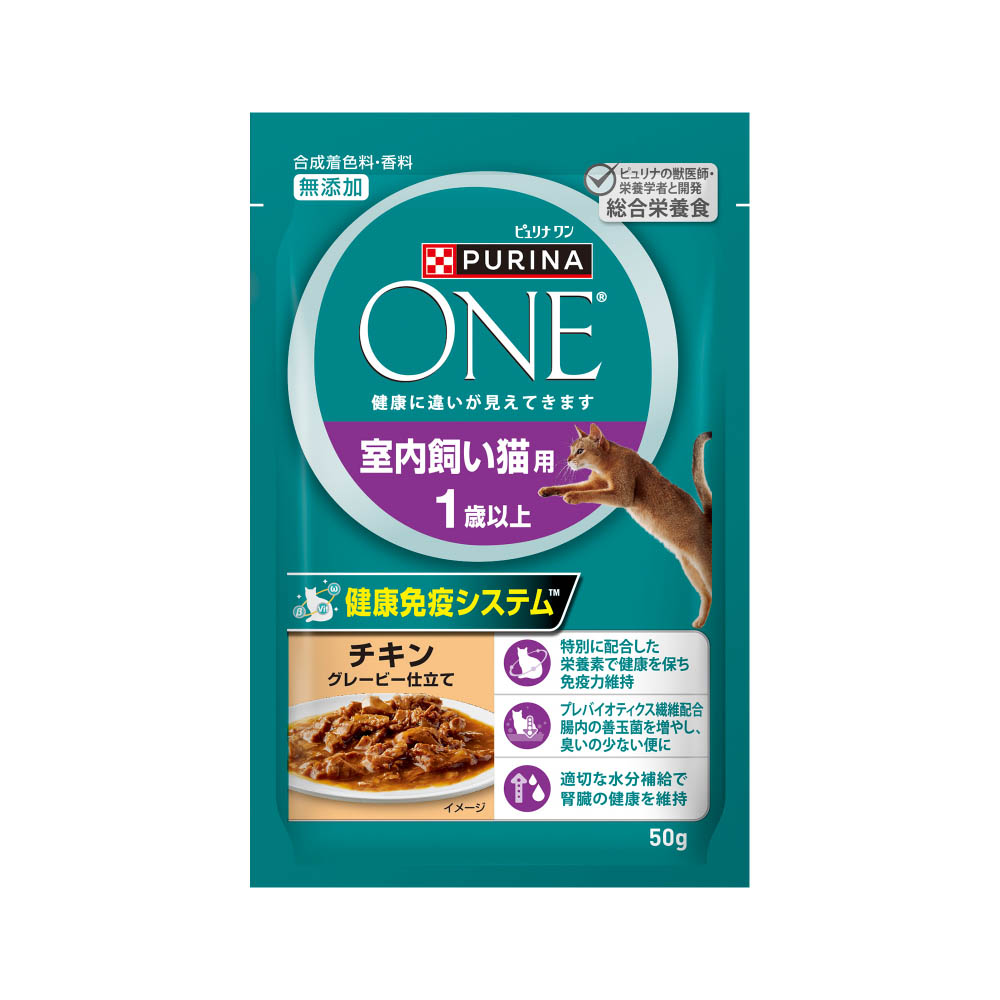 ピュリナワンキャット パウチ室内飼い猫用1歳以上チキングレービー仕立て50g