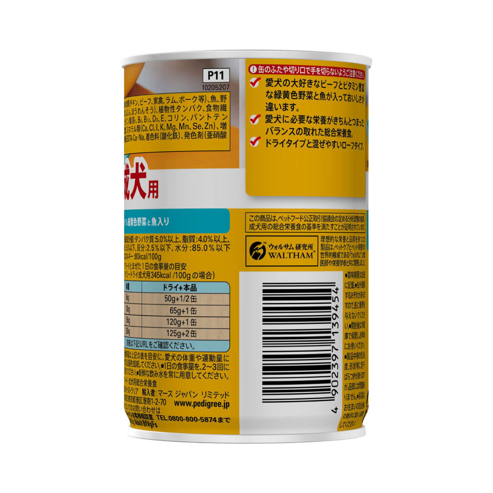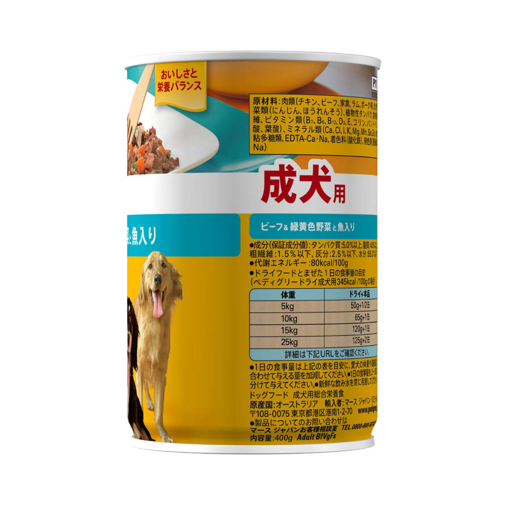 ペディグリー 成犬用 ビーフ&緑黄色野菜と魚入り400g