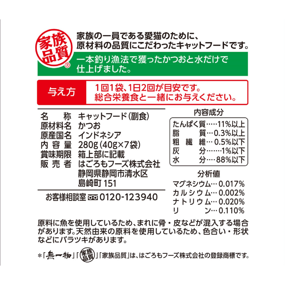 資源環境に配慮した一本釣り漁法で獲ったかつおを空冷にて凍結させて低塩分を実現。低塩分のかつおと水だけで仕上げた7個パック。