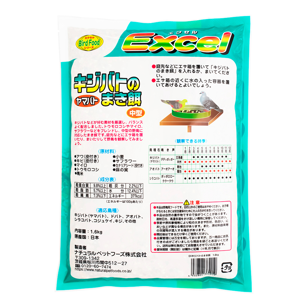 キジバトなどが好む素材を厳選し、バランスよく配合しました。庭先やベランダなどにエサ箱を置いたり、まいたりして野鳥を観察してください。