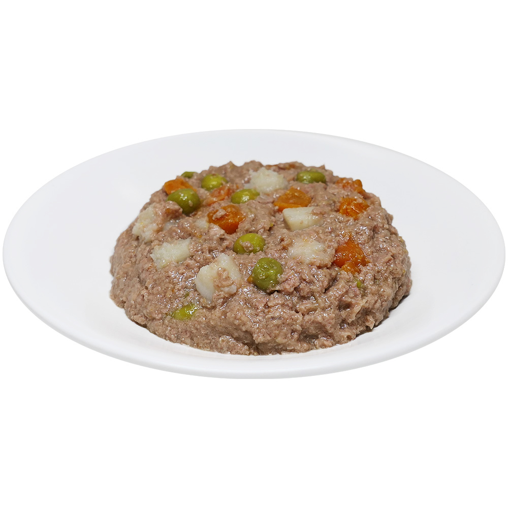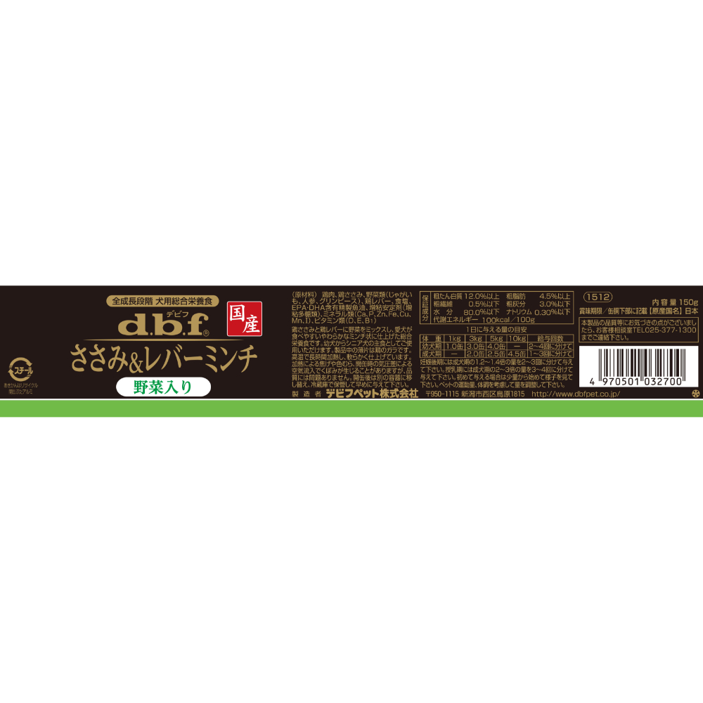 鶏ささみと鶏レバーに食物繊維を含む野菜(じゃがいも、人参、グリンピース)を加え、食べやすいやわらかなミンチ状に仕上げました。幼犬から高齢犬の主食としてご使用いただけます。