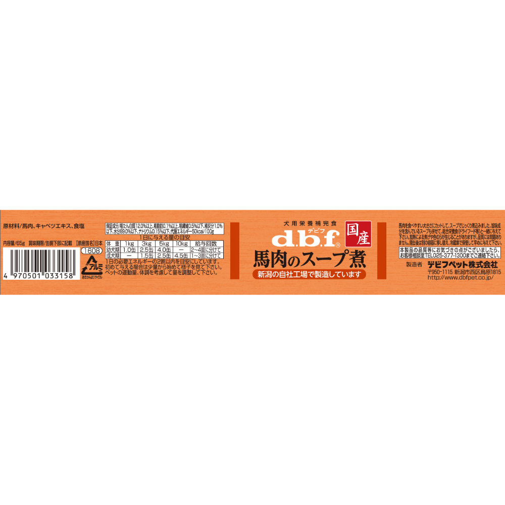 馬肉を食べやすい大きさにカットして、スープと一緒にじっくり煮込み、素材の美味しさと香りをそのまま閉じ込めました。栄養素や旨味成分が含まれているスープも併せて与えて下さい。
