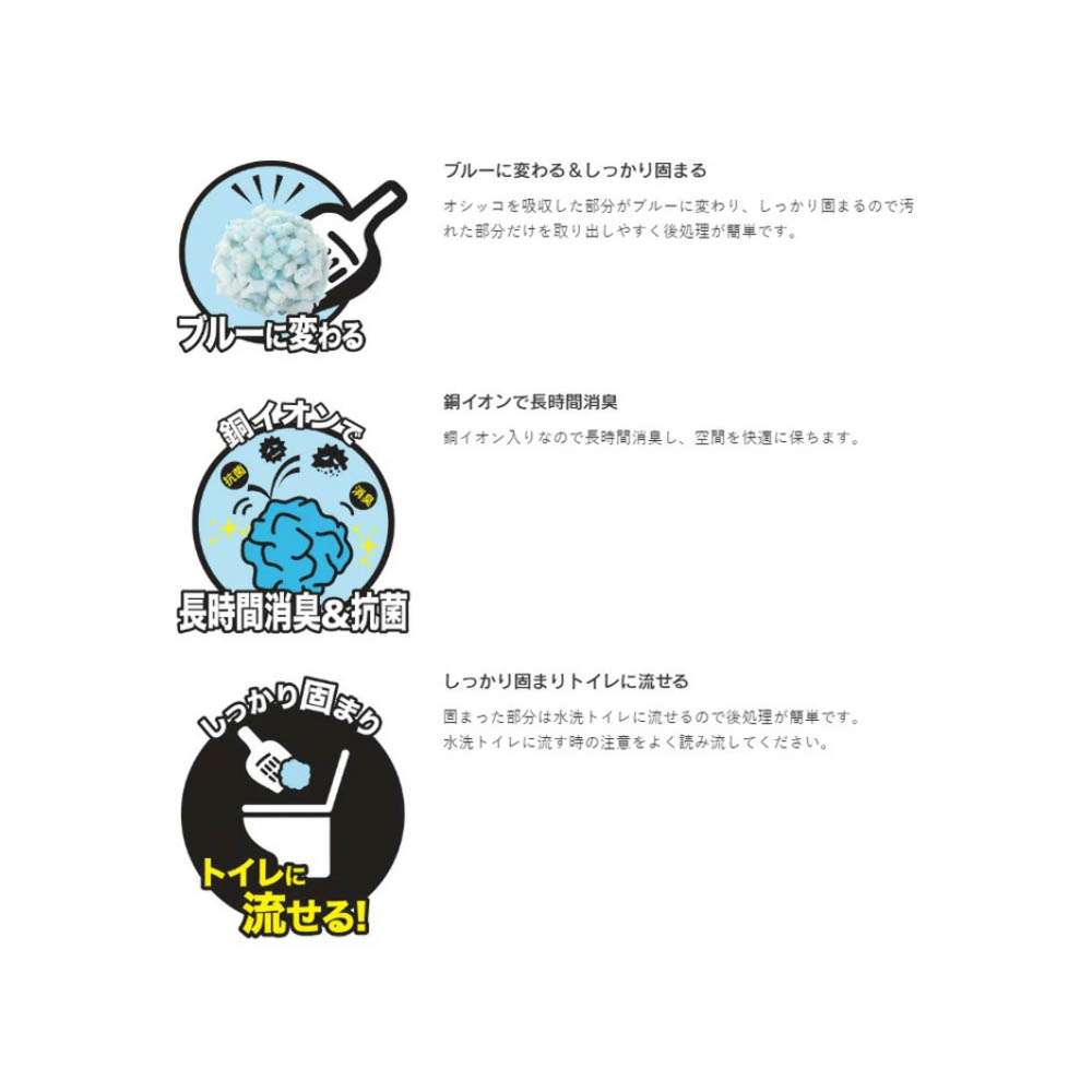 色が変わってあと処理がラクラク使用中に破損・変形・劣化が見られた場合は、直ちに使用を中止してください。本品は猫用トイレ専用ですので、他の用途には使用しないでください。本品はトイレに流せません。詰まりの原因となりますので流さないでください。本品は食品ではないので食べられません。ペットが誤って口に入れた場合、毒性はありませんが多量に食べてしまう場合は使用を中止し、異常が見られる場合は獣医師へご相談ください。
