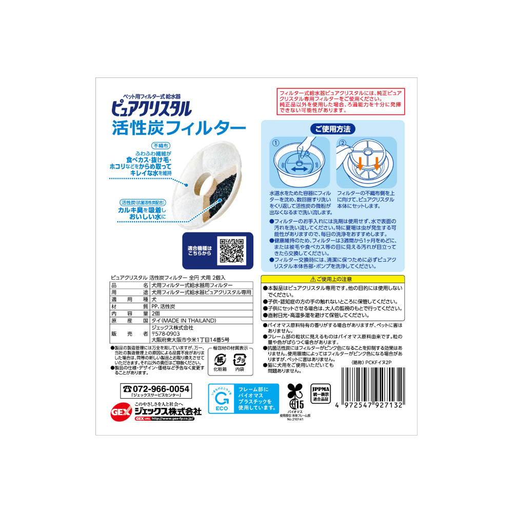ジェックス ピュアクリスタル 活性炭フィルター 全円 犬用  2個入
