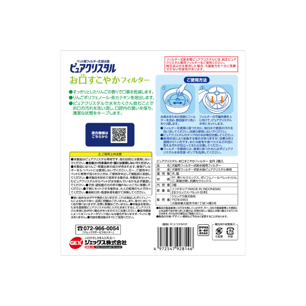 ジェックス ピュアクリスタル お口すこやかフィルター 全円 犬猫兼用 2個入