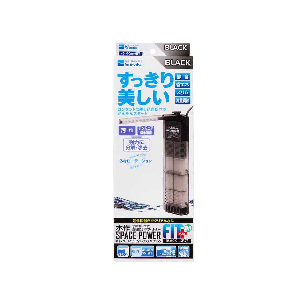 水槽のコーナーにピッタリおさまる音の静かな流量調節機能付き水中フィルター。活性炭ろ材セット装備でクリアな水づくり。水位に応じてヨコ置きも可能。使用中に破損・変形・劣化が見られた場合は、直ちに使用を中止してください。使用の前に必ず付属の説明書をよく読み、正しくセットしてください。適合水槽水量を守って使用する事。魚の量、水槽の設置場所、水質等諸条件により効果に差が出る事がある。魚病薬を使用する際は活性炭カートリッジを外す事。