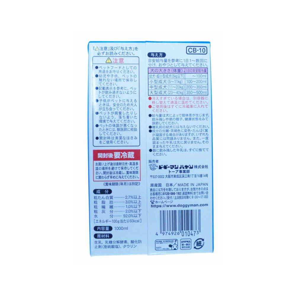 ドギーマン わんちゃんの国産牛乳1000ml