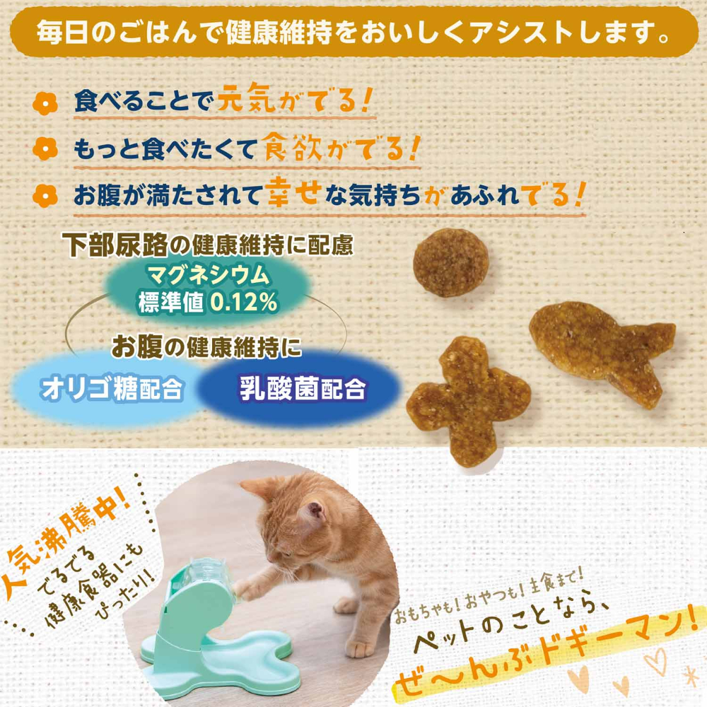毎日のごはんで健康維持をおいしくアシストするドライフードがついに登場!保存料・香料・着色料不使用。