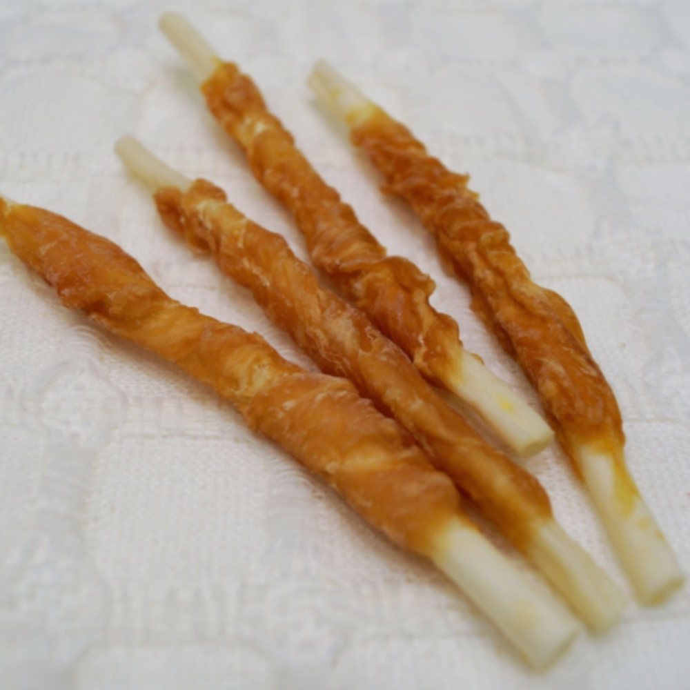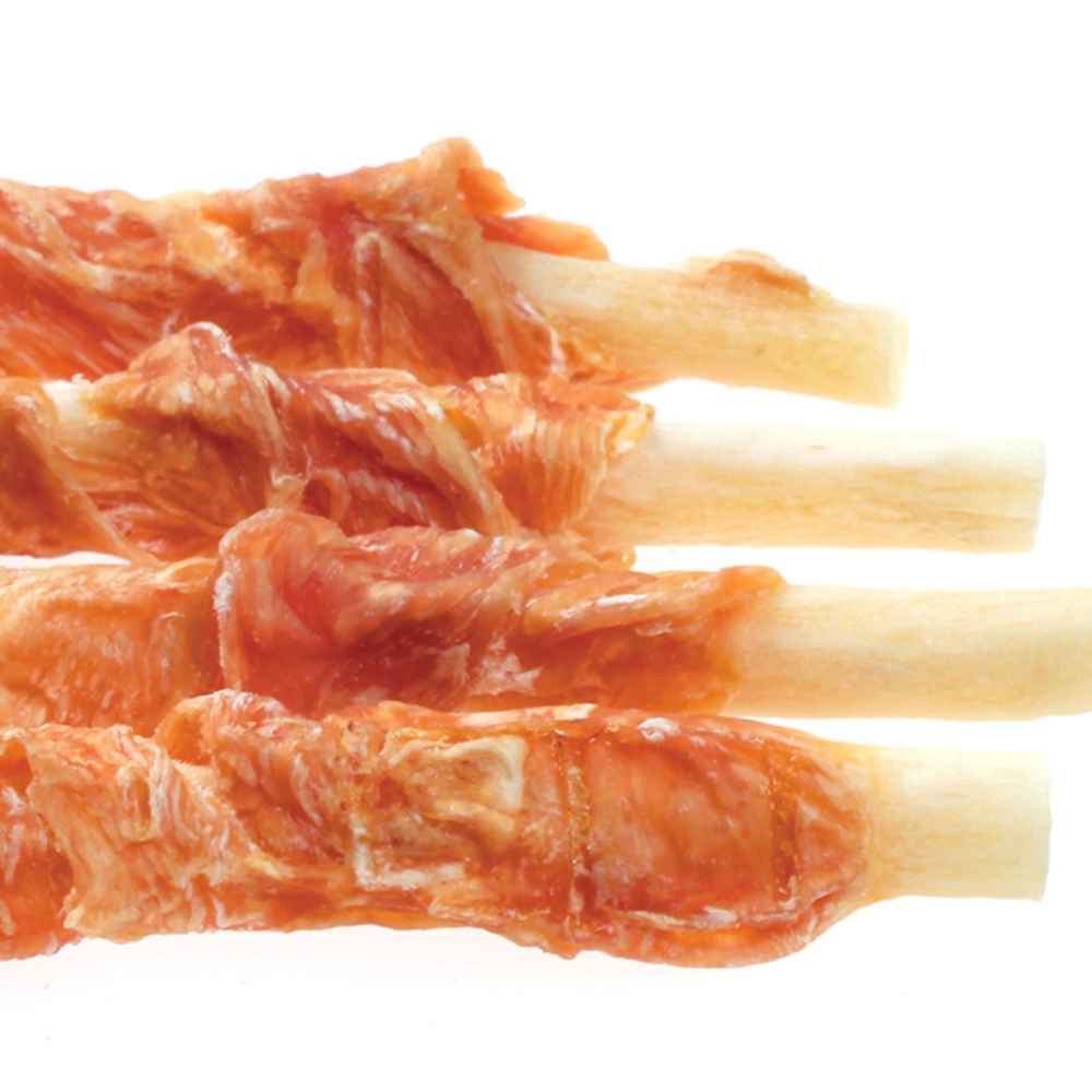 噛む事でデンタル効果が得られる特殊構造の牛皮ガムに鶏ササミを巻き付けました。
